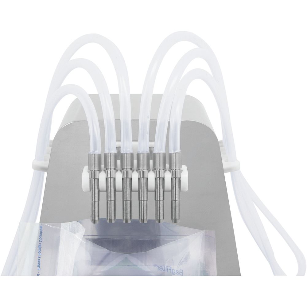 - livrés avec deux pompes intégrées (quatre pompes supplémentaires connectables), un portoir ouvre sachet avec système d'adhérence, un bac de récupération des liquides amovible, 2 tubulures complètes Ø 3,2 mm / Ø 6,4 mm par pompe et 1 logiciel